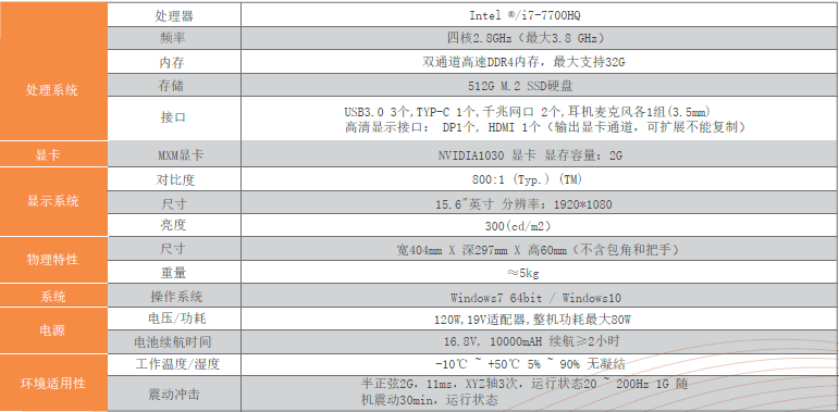L156半加固筆記本-可擴展插槽 產品特性: intel i7-7700HQ DDR4 2 通道高速內存,zui大支持32GB 全高清顯示面板1920 * 1080 標配NVIDIA1030 2G顯卡 全金屬結構設計機身 工作溫度:-10℃ ~ +50℃ L156半加固筆記…