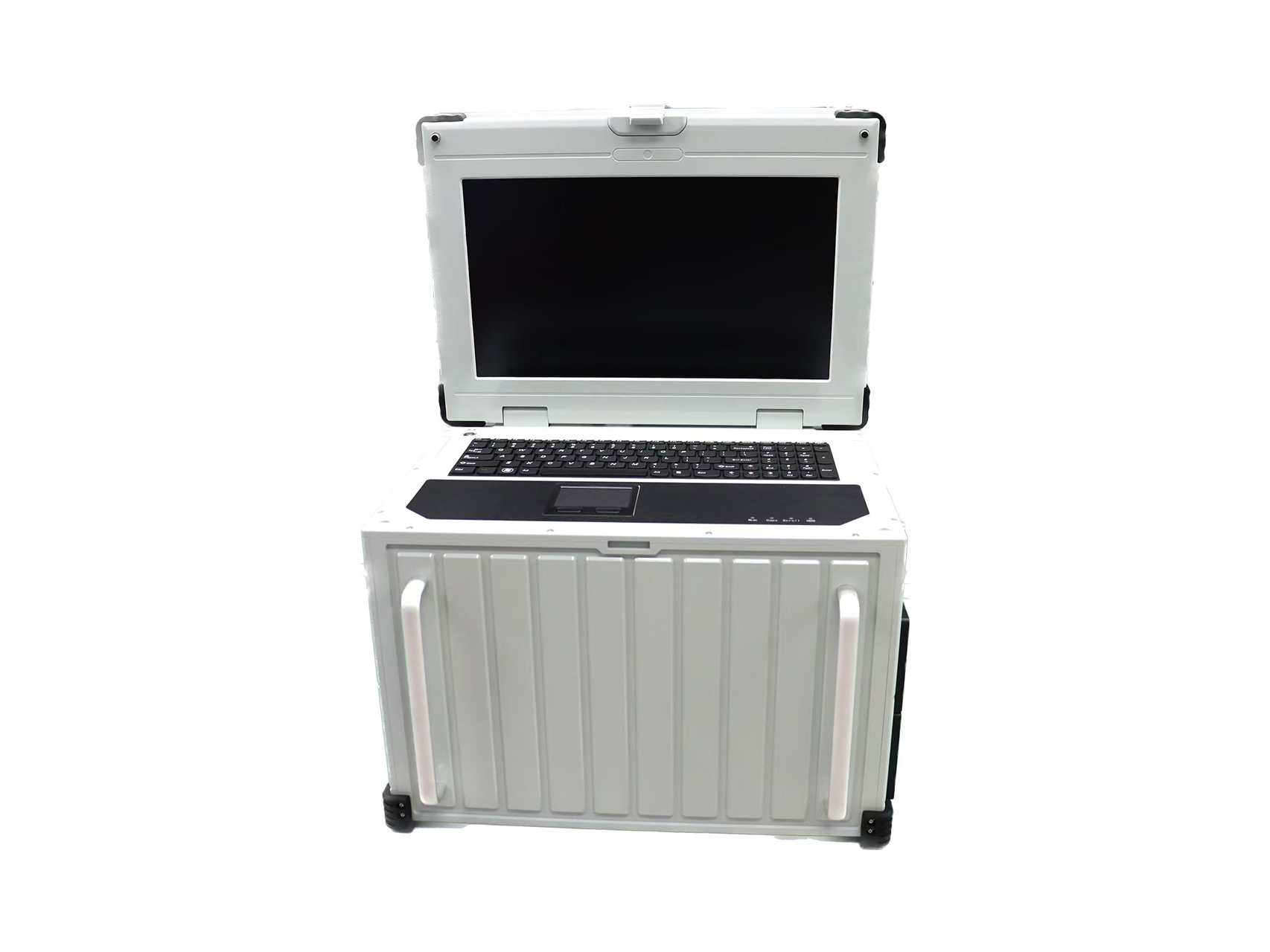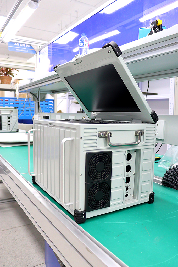 PWS-1569X是根據用戶實際使用需求進行定制的一款便攜式機箱,內部設計安裝用戶的工控機等功能模塊和電源模塊。便攜機配置一塊15.6寸高清分辨率1920*1080顯示屏,便攜機采用強制風冷散熱方式,四角采用橡膠墊腳,進行防震保護。便攜機配備把手,便于搬運。