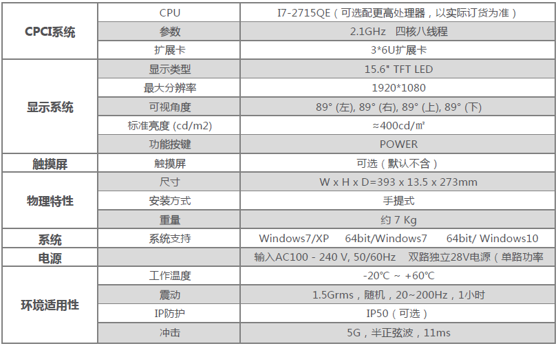 PWS-1501C便攜式CPCI計算機 產(chǎn)品參數(shù):
