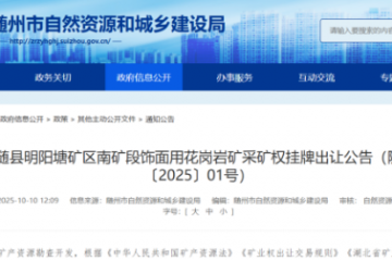 湖北省隨縣明陽(yáng)塘礦區(qū)南礦段飾面用花崗巖礦采礦權(quán)掛牌出讓公告解讀