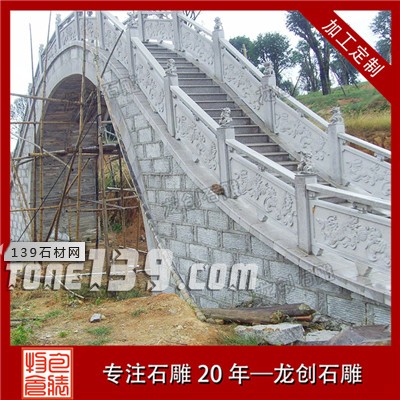 石拱橋一般由青石或者花崗巖雕刻而成,至于所選石材往往根據院子自身特色而定,比如如果是仿古建筑就選擇青石,如果是現代建筑風格也大都選擇花崗巖。青石石拱橋可分為整體和組合兩種,這主要是由尺寸大小決定的。如果院子里的水流較長、較寬,由于石材本身的寬度和長度有限,所以只能選擇組合結構;反之如果水流較為短、窄,則一體結構居多。石橋橋體雕刻有供人邁步的臺階,兩邊有起防護作用的護欄,護欄上面還雕刻有精美浮雕以襯托美觀色彩。