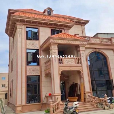 帝王紅石材別墅家裝應用案例 窗套 門套 柱子 外墻 欄桿浮雕等外墻別墅裝飾石材應用