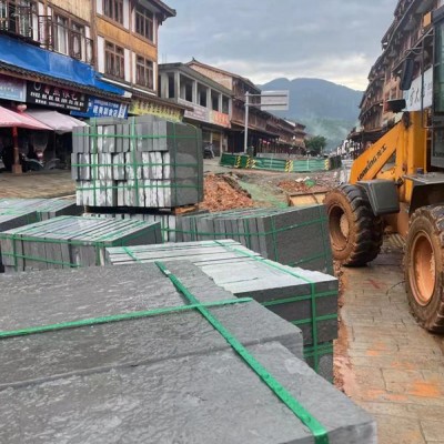 貴州青石條板地鋪工地施工 青石復(fù)古地鋪施工 根雕一條街